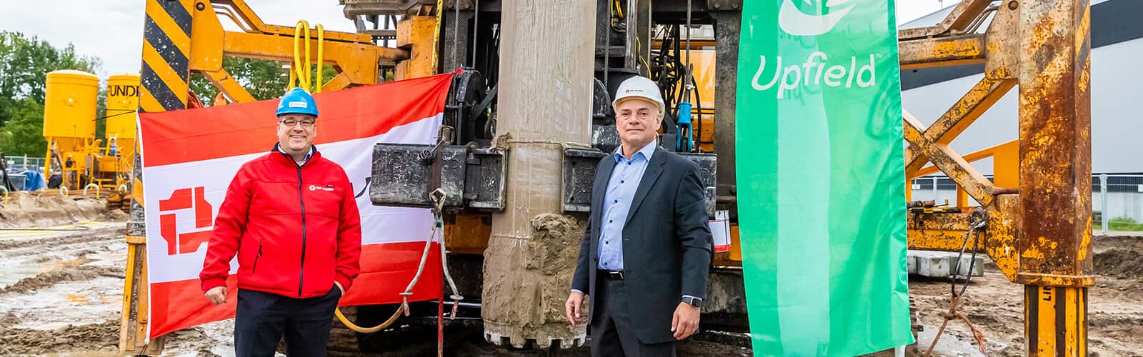The occasion was marked with Upfield Chief Research and Development Officer John Verbakel striking the first pole into the ground with Van Wijnen Director Harry Dijkstra, responsible for the construction of the facility, at the site of the new innovative facility. Also, in attendance virtually, due to Covid 19 restrictions, was The Mayor of Wageningen, Geert van Rumund and board member of Wageningen University Rens Buchwaldt.