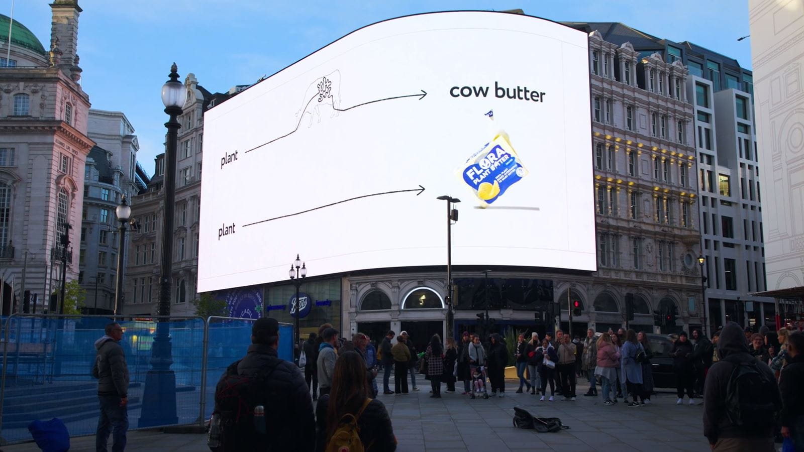 Dominating London's iconic Piccadilly Circus billboard for a full week starting November 6th, the tongue-in-cheek video creatively showcases the benefits of Flora Plant's dairy-free spreads over cow's butter. The continued "Skip the Cow" theme builds on the January campaign launch by riding the wave of the growing plant-based movement and encouraging consumers to move to plant-based alternatives.